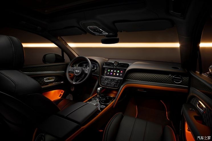 Về nội thất, Bentley đã tạo ra tông màu tương phản cho Bentayga S Black Edition. Whale Black tương phản với các 7 màu sắc bao gồm Cam, Vàng, Xanh Klein, Đỏ, Trắng, Xanh, Đen. Bảng điều khiển trung tâm và cửa ra vào được làm bằng vật liệu sợi carbon mới và gói chrome tối màu mới đã được đưa vào trang bị tiêu chuẩn.