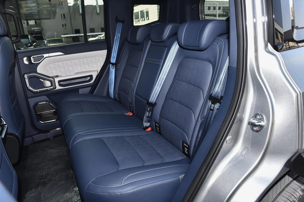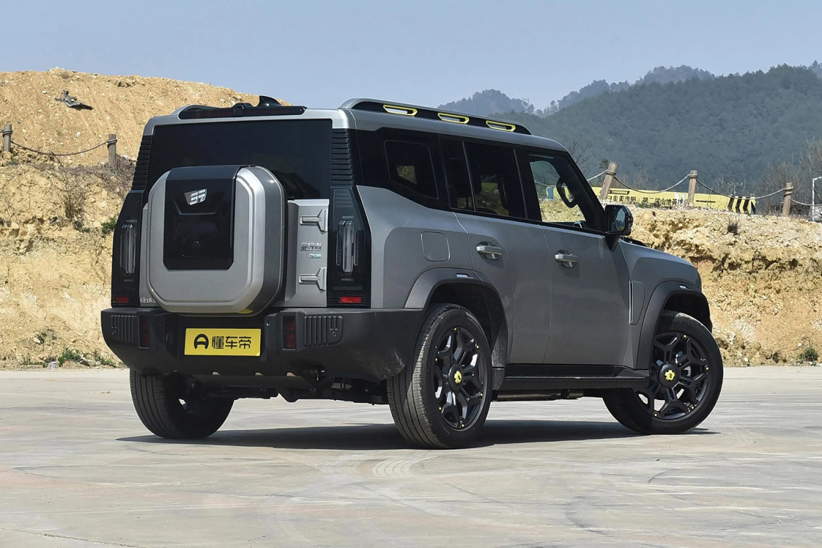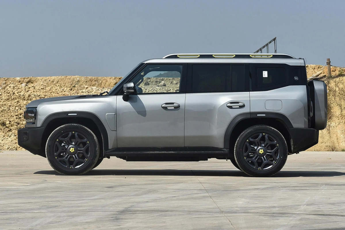 Giá để đồ gắn trên nóc xe và vòm bánh xe nhô ra ngoài càng tạo thêm cảm giác off-road. Jetour Shanhai T2 có kích thước 4785/2006/1875 mm và chiều dài cơ sở là 2800 mm, kích thước này tương đương chiếc Land Rover Defender 110 (4.758 mm D x 1.996 mm R x 1.967 mm). Bộ mâm đường kính 19 hoặc 20 inch. Thể tích khoang hành lý đạt 580 lít.
