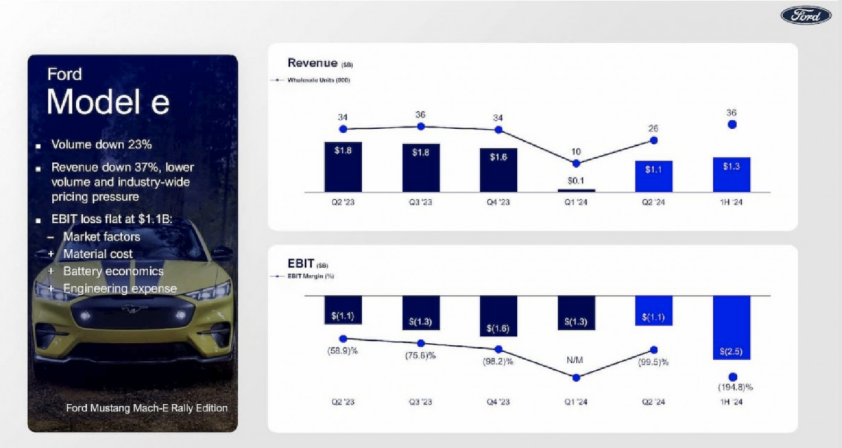 Ford cho rằng những thua lỗ này là do tình trạng giảm giá trên toàn ngành và sản lượng xe điện thấp hơn kế hoạch. Đây cũng là thời điểm Ford đang cắt giảm nhiều dự án như sản lượng F-150 Lightning, hoãn 12 tỷ USD đầu tư vào xe điện với lý do nhu cầu thấp hơn mong đợi.