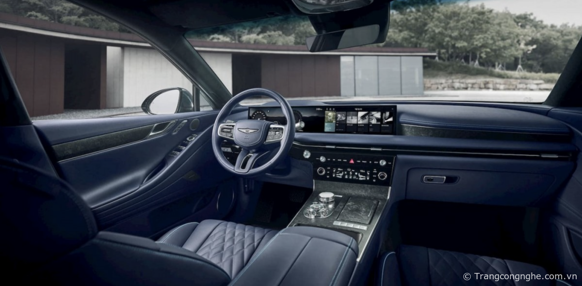 Bên trong nội thất, Genesis G80 Electrified 2025 được nâng cấp với màn hình hiển thị trước mắt lái 27 inch và màn hình giải trí trung tâm cảm ứng 27 inch, tích hợp hệ thống giải trí và thông tin giải trí dạng OLED. Nội thất G80 Electrified còn được trang bị âm thanh chất lượng cao với hệ thống loa Bang & Olufsen 17 loa, hỗ trợ công nghệ âm thanh không gian 3D Dolby Atmos.