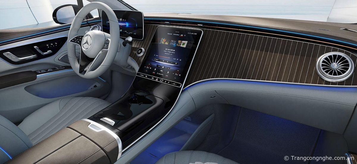 Bên trong cabin, EQE 300 gây ấn tượng với không gian rộng rãi, sang trọng nhờ khung gầm hoàn toàn mới EVA. Ghế da cao cấp, vô lăng 3 chấu bọc da, màn hình cảm ứng 12,8-17,7 inch cảm ứng hiển thị thông tin giải trí, định vị. Hàng ghế sau rộng rãi cùng tính năng sưởi ấm vùng lưng cho hành khách. Nội thất EQE 300 toát lên phong cách sang trọng, tiện nghi.