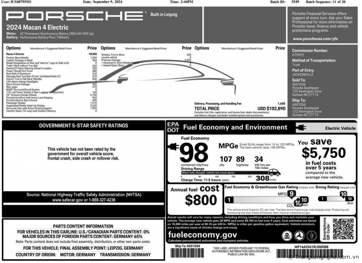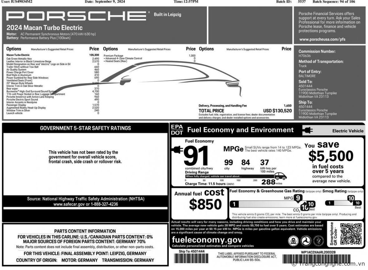 Với những trang bị và công nghệ tiên tiến bao gồm hệ thống treo chủ động, ghế sưởi/thông gió, màn hình cảm ứng trung tâm cỡ lớn, hỗ trợ Apple Carplay/Android Auto... Macan EV hứa hẹn trở thành một phương tiện di chuyển thân thiện môi trường với trải nghiệm lái xe sang trọng, công nghệ. Theo kế hoạch, những chiếc Macan EV đầu tiên sẽ bắt đầu được bán ra tại các đại lý Mỹ từ ngày 30/9 tới. Sự kiện này đánh dấu bước đi mới của Porsche trong cuộc chuyển đổi sang ô tô điện toàn cầu.