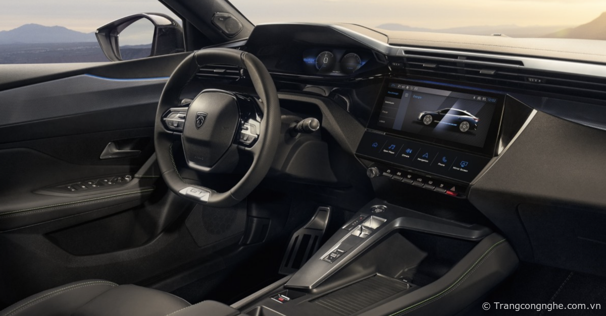 Bước vào bên trong cabin, Peugeot e-408 mang đến không gian rộng rãi, tiện nghi cho 5 chỗ ngồi. Đặc biệt nổi bật là không gian i-Cockpit 3D độc đáo của Peugeot với màn hình Head-Up Display rộng 10 inch đặt cao cùng vô lăng đa chức năng và bố trí những phím chức năng thông minh xung quanh nó. Ngoài ra, vô lăng sau có thể gập lên để tạo không gian rộng rãi hơn cho hàng ghế sau. Hệ thông thông tin giải trí hiện đại với màn hình cảm ứng 10 inch hỗ trợ kết nối Apple CarPlay/Android Auto không dây.
