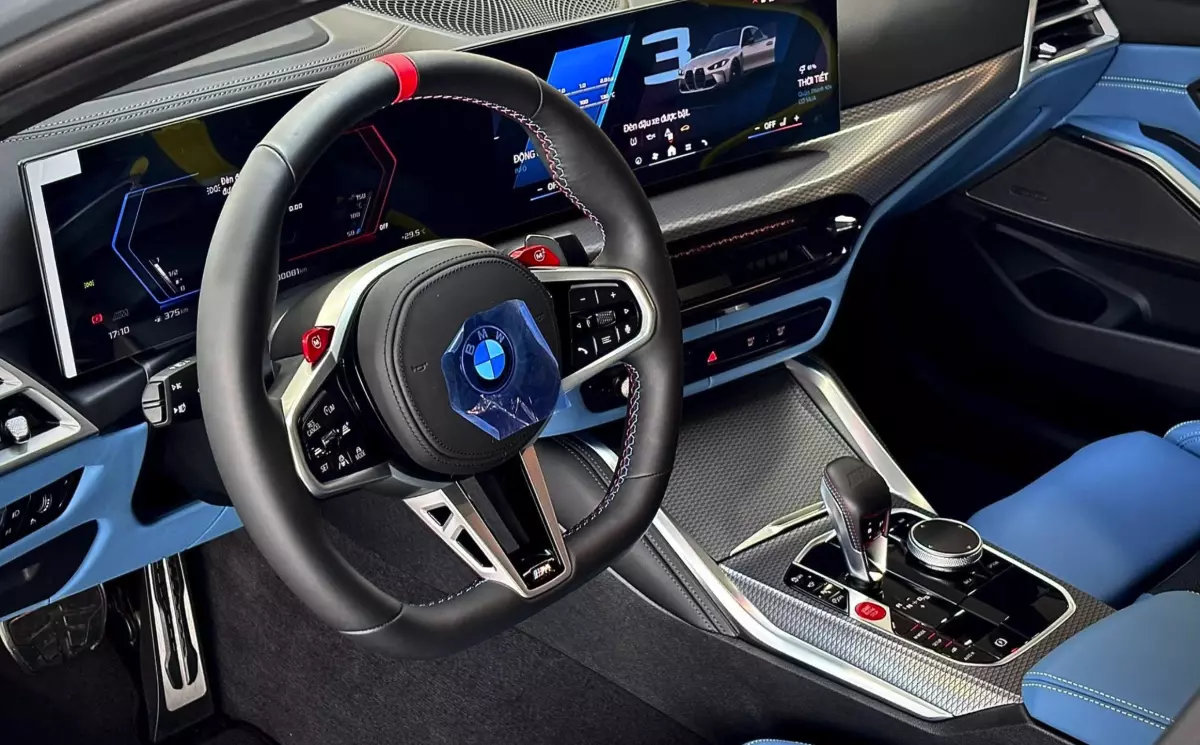 Bên trong khoang lái, BMW M3 G80 và M4 G82 LCI được trang bị hệ thống màn hình kép iDrive thế hệ mới, tích hợp các tính năng hỗ trợ hiệu suất như M Drift Analyzer và M Laptimer, giúp người lái theo dõi và tối ưu hóa khả năng vận hành. Vô lăng thể thao 3 chấu bọc da cao cấp, ghế ngồi bọc da Merino với logo M3 phát sáng, mang lại cảm giác sang trọng và đậm chất thể thao. Nội thất không chỉ tập trung vào sự thoải mái mà còn được thiết kế để tối ưu trải nghiệm lái xe ở tốc độ cao.