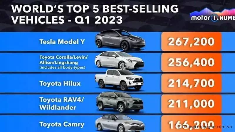 Trong top 5 mẫu xe bán chạy nhất thế giới, 3/5 xe thuộc hãng Toyota gồm sedan Camry, SUV RAV4, bán tải Hilux. Đây là tấm gương mà Tesla đang muốn ‘noi’ theo để sớm đưa xe điện Tesla phổ biến toàn cầu và có vị thế vững chãi trong ngành xe hơi thế giới.