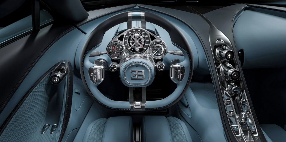 Ngồi vào cabin của Tourbillon, chắc chắn người lái sẽ cảm nhận được kỹ nghệ, mỹ thuật của Bugatti đã lên ngôi. Một trong những chi tiết nổi bật nhất chính là cụm đồng hồ kỹ thuật rời được làm hoàn toàn thủ công, tỉ mỉ bởi các thợ thủ công Bugatti. Chưa dừng lại ở đó, vô lăng, bảng điều khiển trung tâm cũng được chế tác vô cùng công phu từ những vật liệu cao cấp bậc nhất. Ghế ngồi cố định hạ thấp trọng tâm, tạo cảm giác liền mạch cho người lái.